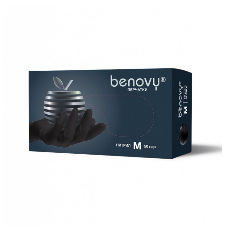 М р-р ЧЕРНЫЕ Перчатки нитриловые Benovy н/опудр. 50 пар