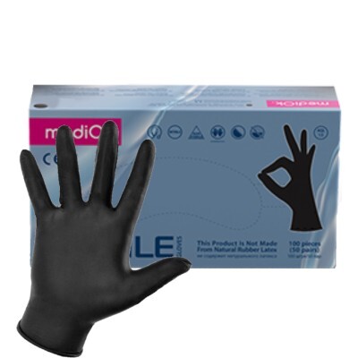 XL р-р ЧЕРНЫЕ MEDIOK перчатки нитриловые н/опудр. (50пар)